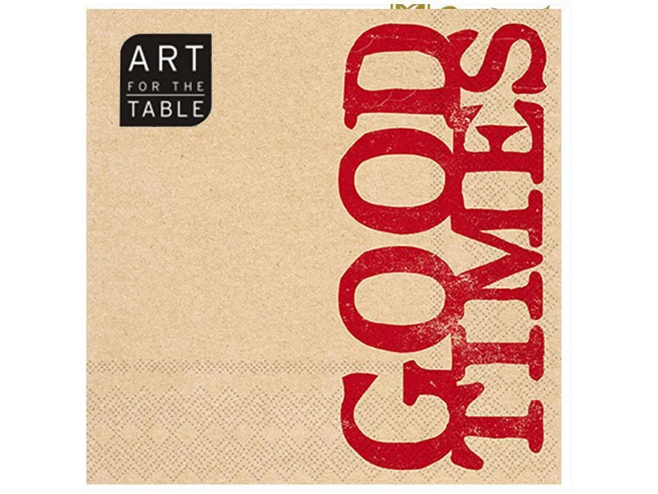 20-PC "Good Times" Napkin,13"x13" 2-ply, Brown Paper,19gsm, Ploybag