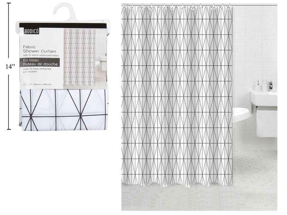 | Name | Bodico, Fabric Shower Curtain, geo (70x70"), hanger w header |