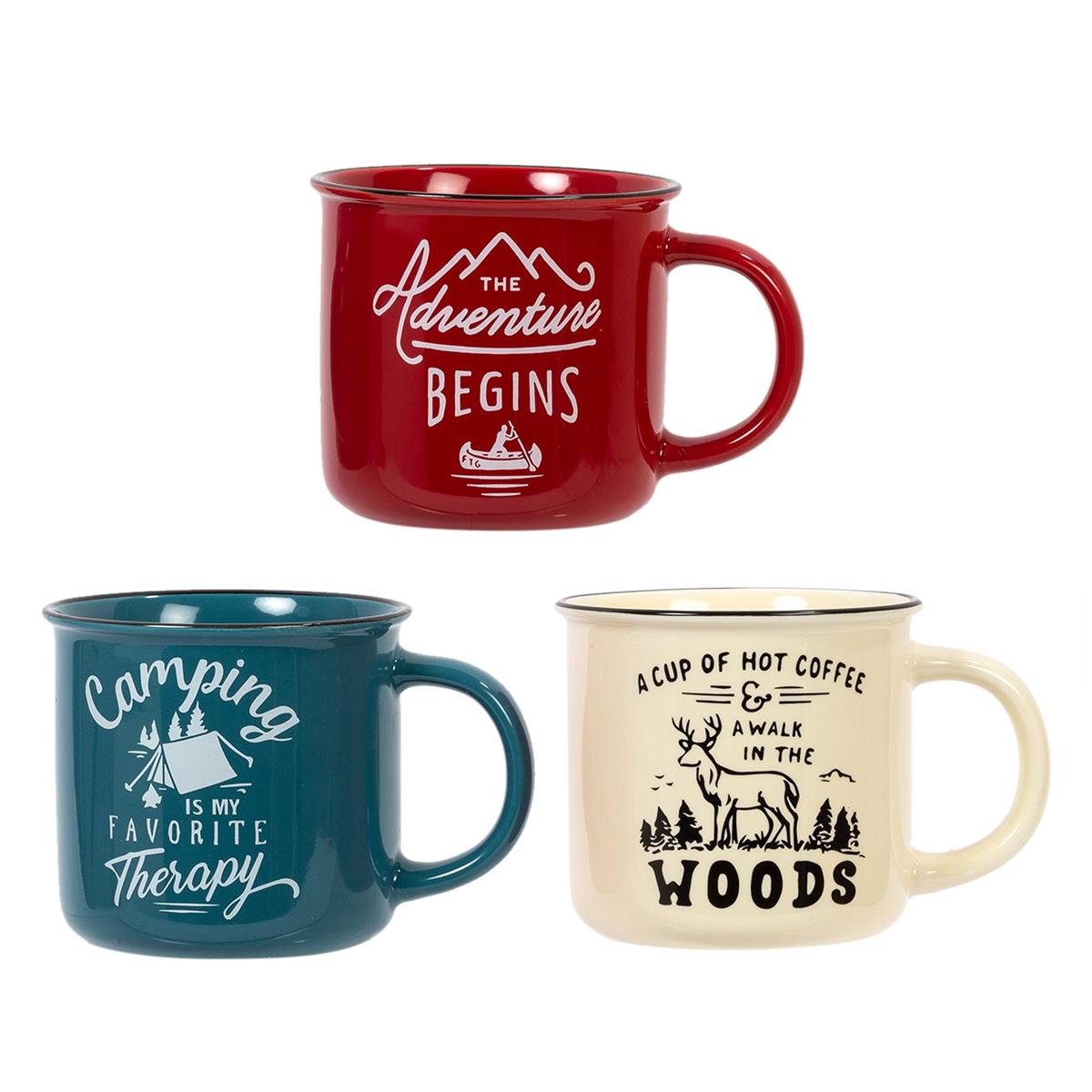 Camping 12oz. Colour Glazed Ceramic Mug, 3asst