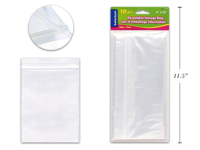 CLEAR ZIP LOCK BAGS 9X12" 10 PCS/PKG