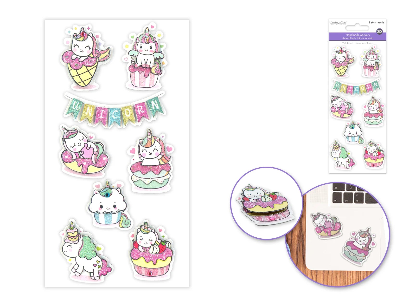 | Name | Handmade Sticker: 3D Glitter Cardstock Elements 250gsm L) Unicorn Bday |