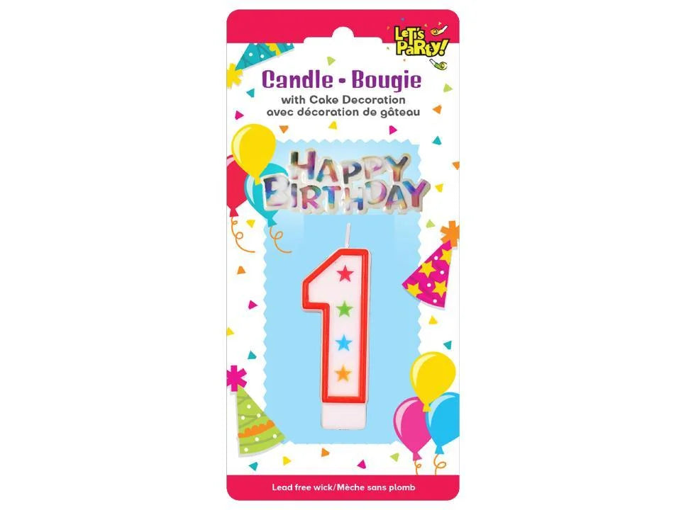 Let's Party #1 Birthday Candle set 8cmH, 6.5x3cm sign. b/c