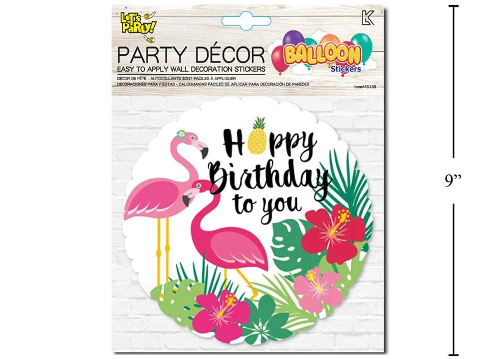 Let's Party,Balloon look,Wall Decor Flamingo, 6.5", Round, Poly Bag